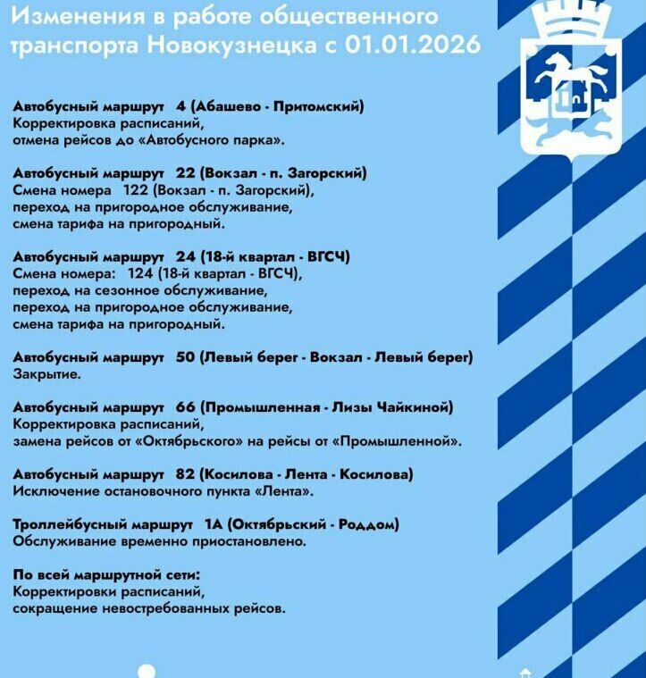 С 1 января в Новокузнецке произойдут серьёзные изменения в работе автобусов, сообщает Управление по транспорту и связи мэрии.