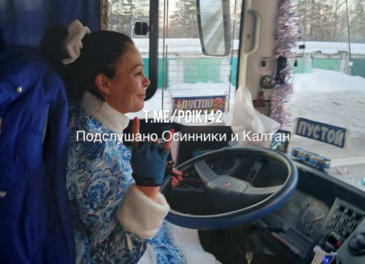 Пассажиры маршрута "Осинники – Малиновка" попали на необычное зрелище – их автобусом управляла Снегурочка в стиле рок, пишет телеграмм-канал "Подслушано Осинники и Калтан".