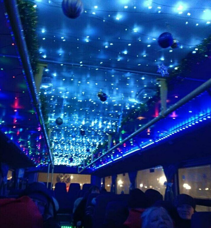 – Он так красочно оформлен к Новому году. Столько человек вложил сюда души! Весь потолок, крыша, внутри – в красочной иллюминации. Чехлы в стиле Деда Мороза, красные с белой опушкой. На окнах снежинки! Шторочки подвязаны красивыми бантиками! Не автобус, а сказка! – восхищается пассажирка.