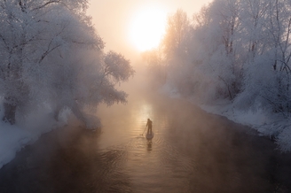 – Так как стояли сильные морозы, около –40 градусов, вода здесь сильно парила. Вокруг такая зимняя сказка за счет пара, который оседает и превращается в иней. Такой перфоманс получился морозный, – пояснил сибиряк.