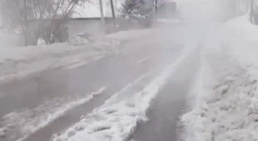 Последствия порыва трубы на окраине Кемерова попали на видео: дорога превратилась в замороженную реку.