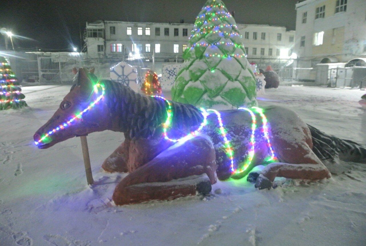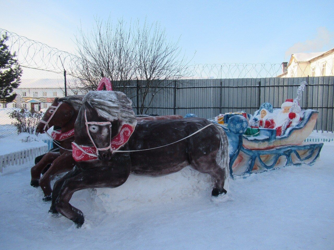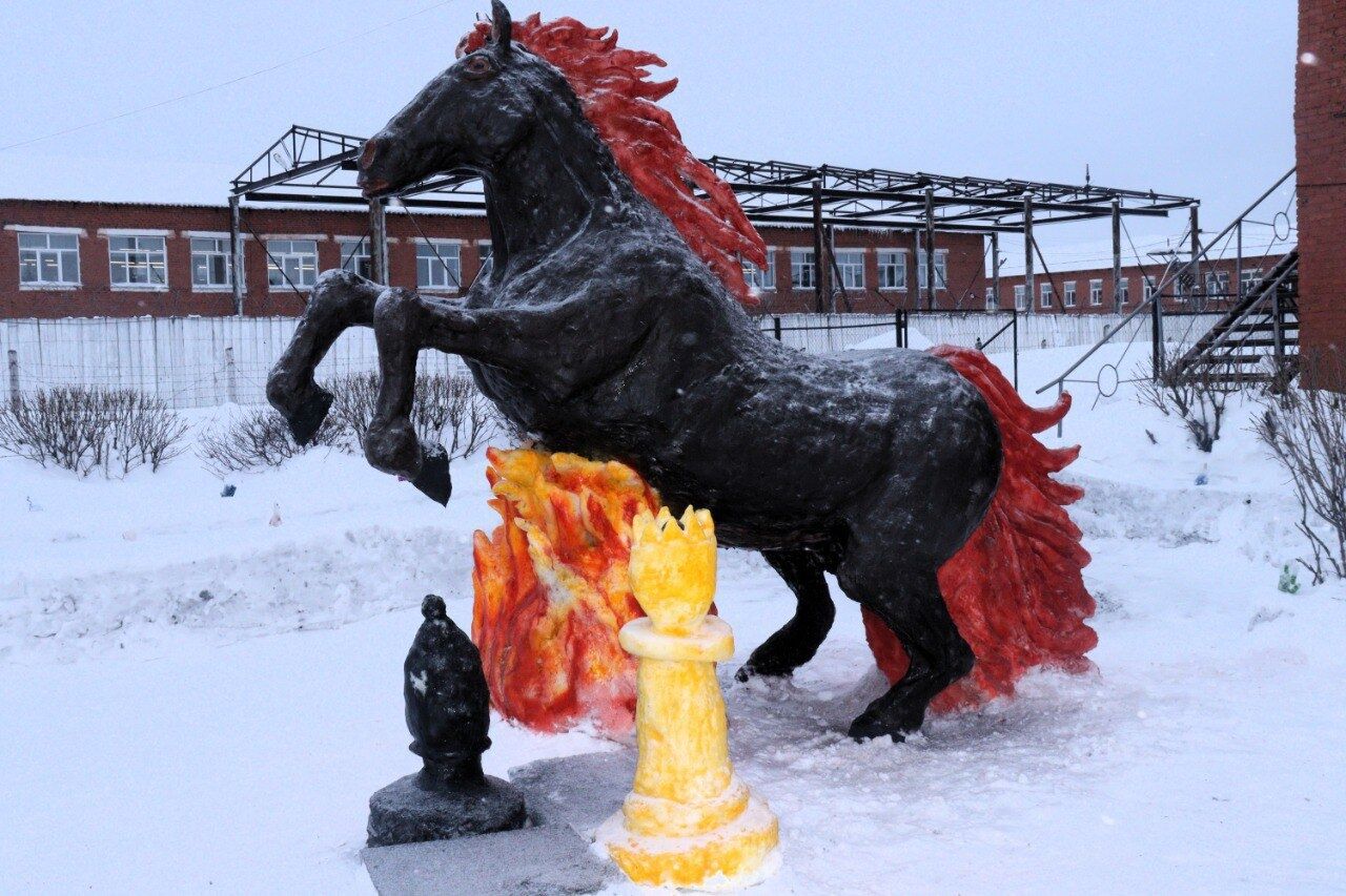 Практически каждый отряд представил свою композицию. Осуждённые в течение двух недель кропотливо вырезали из снежных глыб свои работы. Самый частый персонаж этого года – конь.