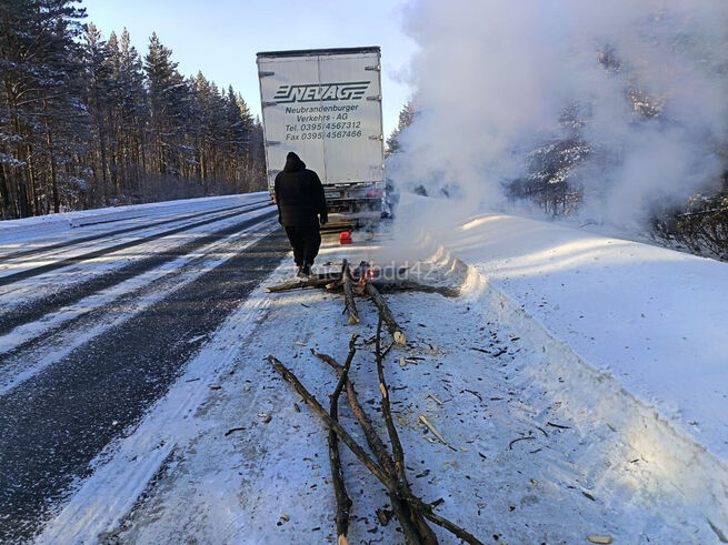 В экстремальных погодных условиях сотрудники Госавтоинспекции Чебулинского округа экстренно помогли водителю большегруза. Когда температура воздуха опустилась до −44 °C, у него буквально замёрзло топливо.