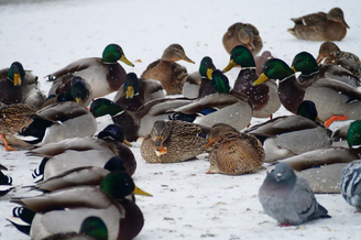 В субботу, 24 января, в 14:00 в кемеровском парке "Антошка" началась ежегодная акция "Серая шейка". Толпы кемеровчан, которые захотели присоединиться, пришли к реке, чтобы считать уток.