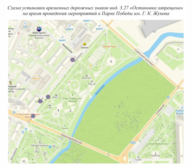 Так, с 20:00 28 января до 13:00 29 января ограничение парковки будет действовать от ул. Красноармейской до ул. Васильева напротив парка Победы им. Г.К. Жукова.