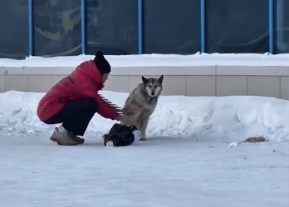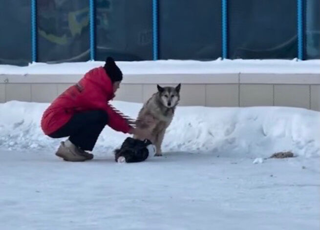 Кузбассовцы поделились трогательным видео, на котором женщина кормит уличную собаку, трепетно гладя её и грея в руках её замерзшие лапы. Его опубликовали в телеграм-канале "Вести Кузбасс – Новости".