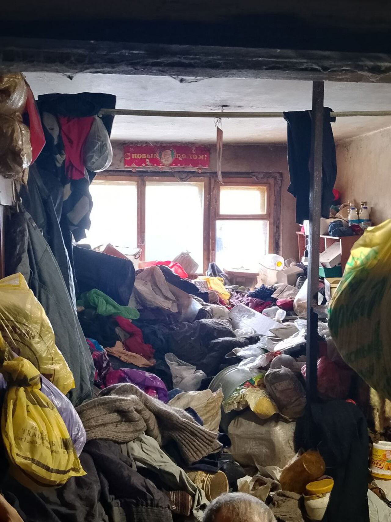 В плюшкиновой квартире бесконечно прибавляется мусора, оттуда периодически протекают жидкости – следы протечек обнаруживаются на потолке в комнате и туалете. По всему подъезду просочился резкий неприятный запах.
