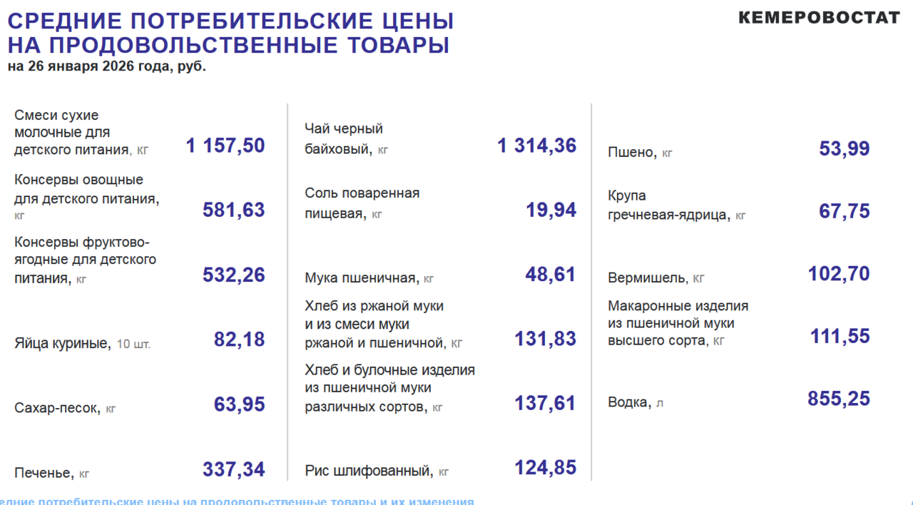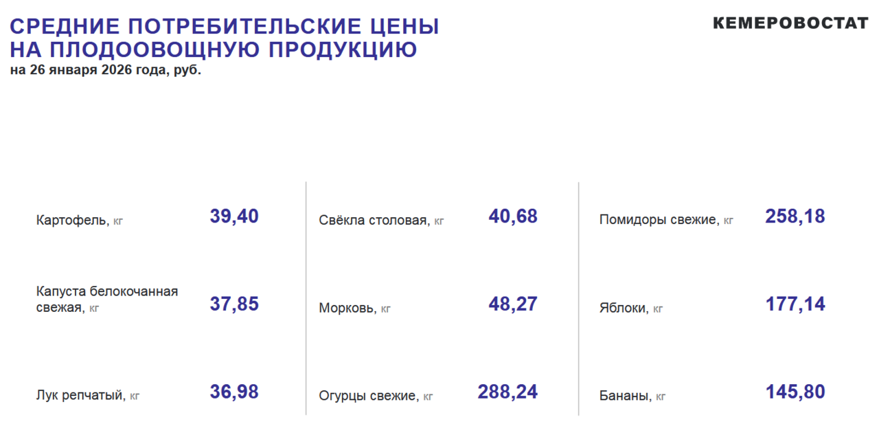 По данным Кемеровостата, опубликованным в пятницу, в регионе с 19 по 26 января подорожали некоторые товары.
