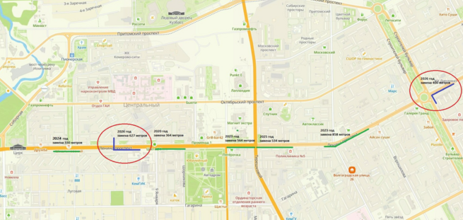 Первый участок находится напротив дома №75. Здесь летом обновят 627 метров труб, включая участки под самим проспектом. Второй участок – у бульварного кольца, напротив дома №137, где заменят 400 метров трубопроводов с заходом на бульвар Строителей.