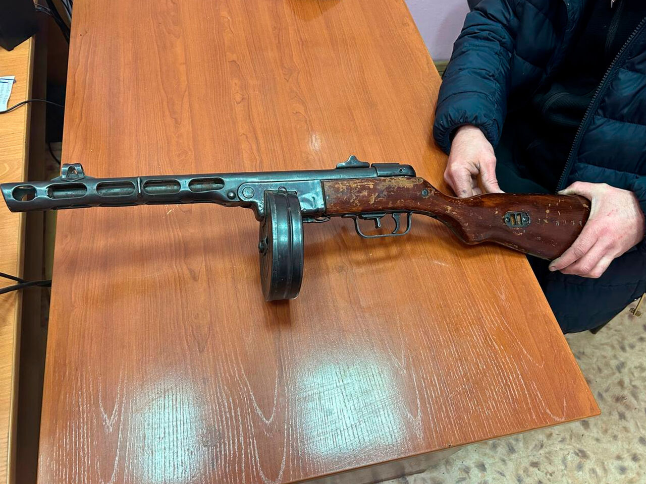 Изъятый ППШ предварительно идентифицировали как исторический образец времен ВОВ. В данный момент специалисты устанавливают происхождение оружия.