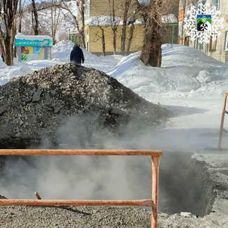 Днём 6 февраля в Таштаголе мощно прорвало теплотрассу, из-за чего городским службам пришлось экстренно рыть большую яму.