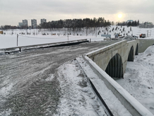 С приходом тепла строители разберут нижнюю часть дамбы, так как она возводилась лишь на время возведения моста. Далее специалисты займутся благоустройством и монтажом подсветки.