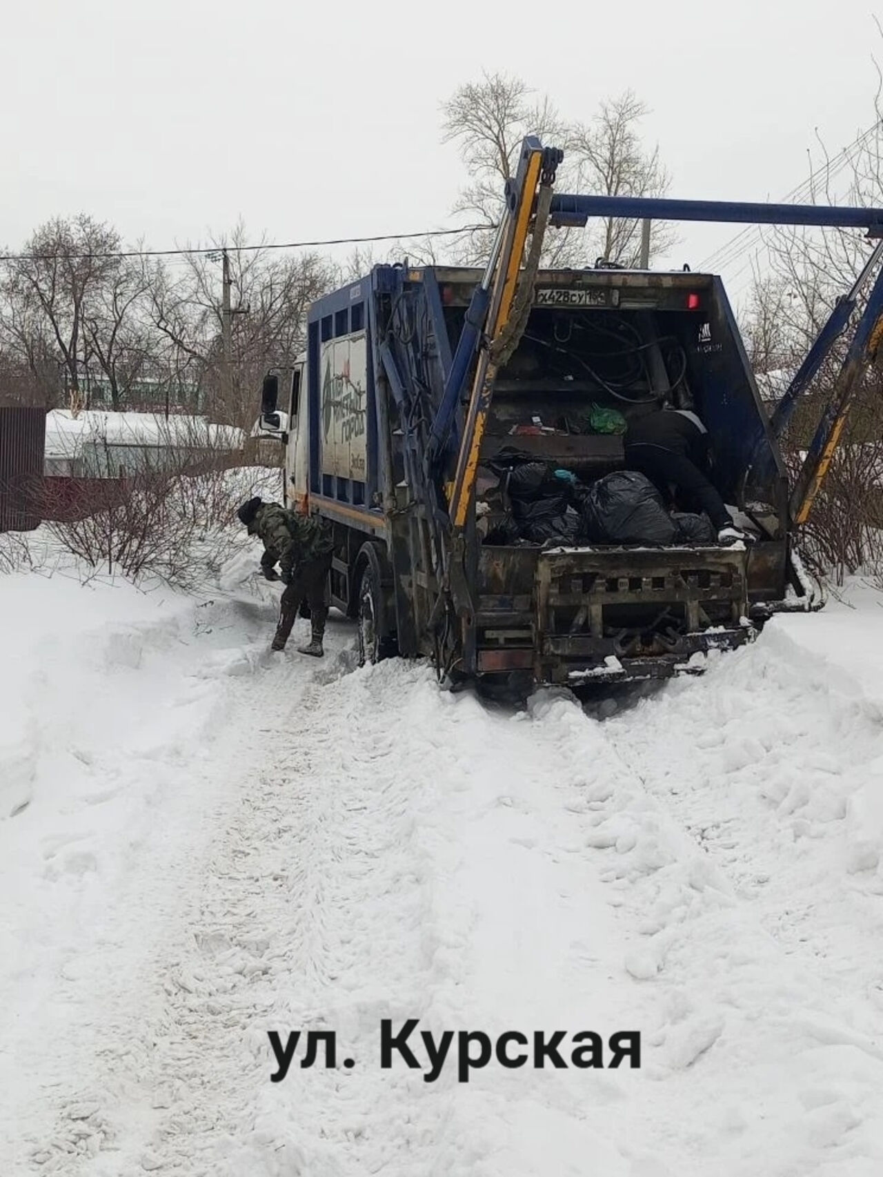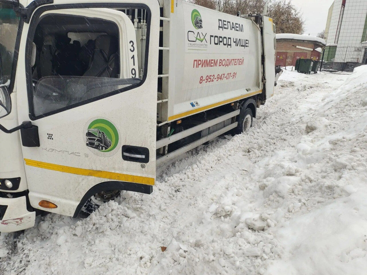 В Новосибирске из‑за потепления мусоровозы всё чаще застревают в снежной каше и не могут добраться до контейнеров с отходами.