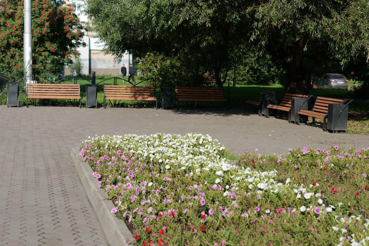 - сквер у суда Ленинского района, пр. Химиков, 20. 3 этап – замена скамеек и урн;