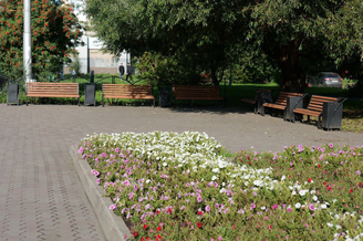 - сквер на пр. Молодежном, 10. 2 этап – новые скамейки и растительность;