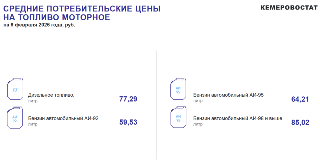 Бензин в среднем не поменялся в цене. За литр АИ-92 просят 59,53 рубля, АИ-95 – 64,21 рубля, АИ-98 – 85,02 рубля.