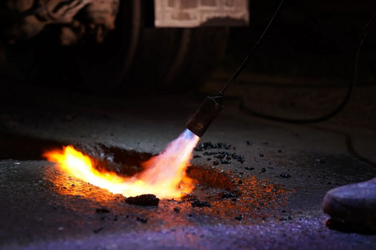Для восстановления покрытия используют литую асфальтобетонную смесь. Эта технология позволяет устранять дефекты даже при отрицательных температурах – повреждения на дорогах образовались за зимний период.