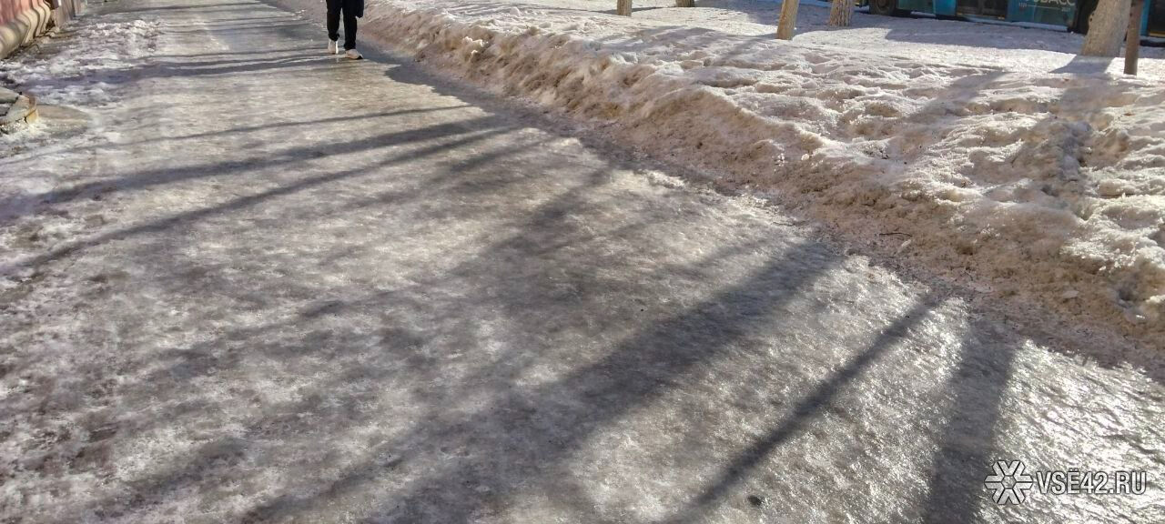 От улицы Кирова до театра оперетты центр Кемерова покрылся сплошной наледью.