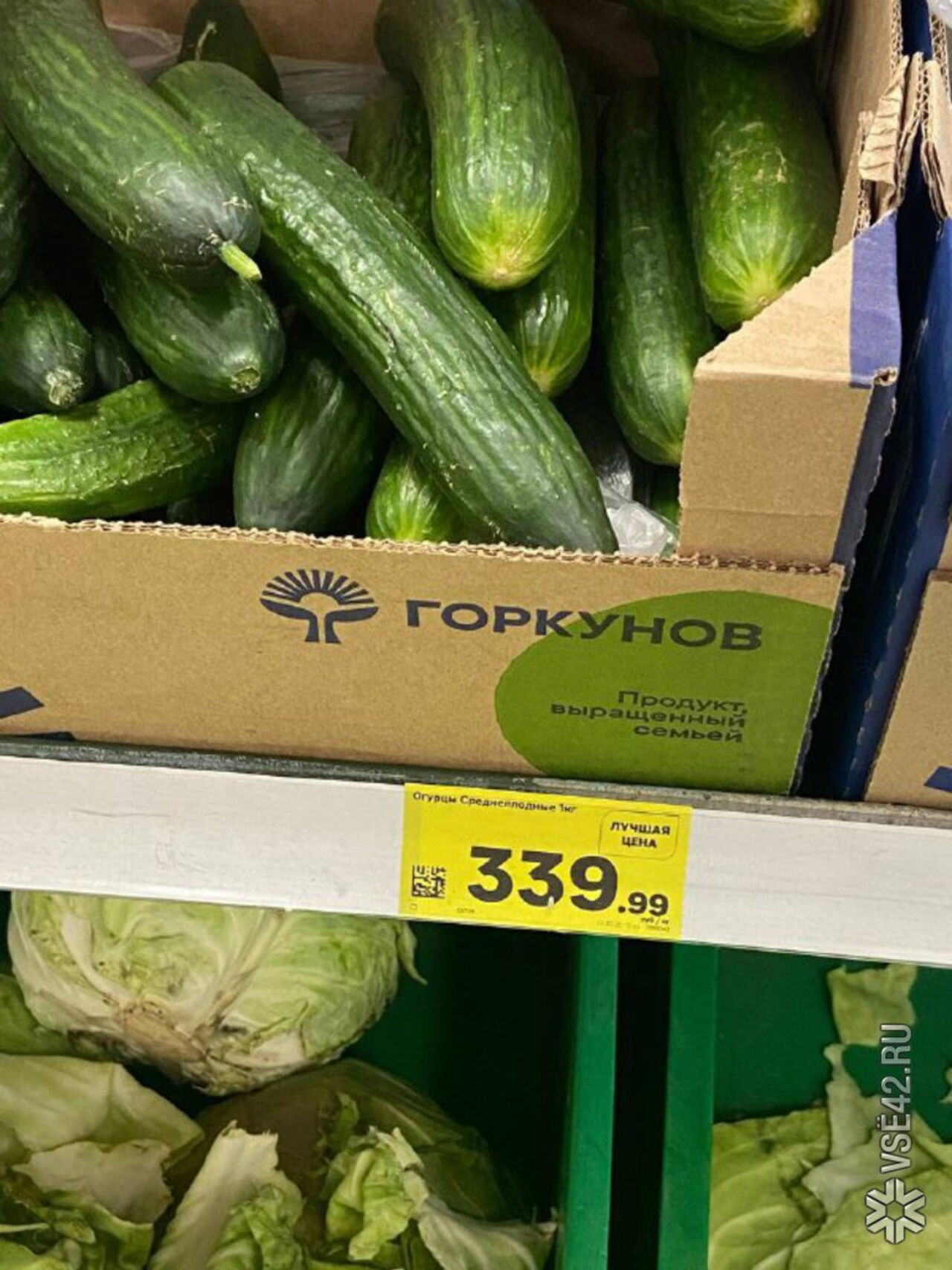 "Бегемаг" – огурцы 330 рублей, их значительно обгоняют в цене обычные помидоры – 400 рублей, и чуть меньше перцы – 390р.