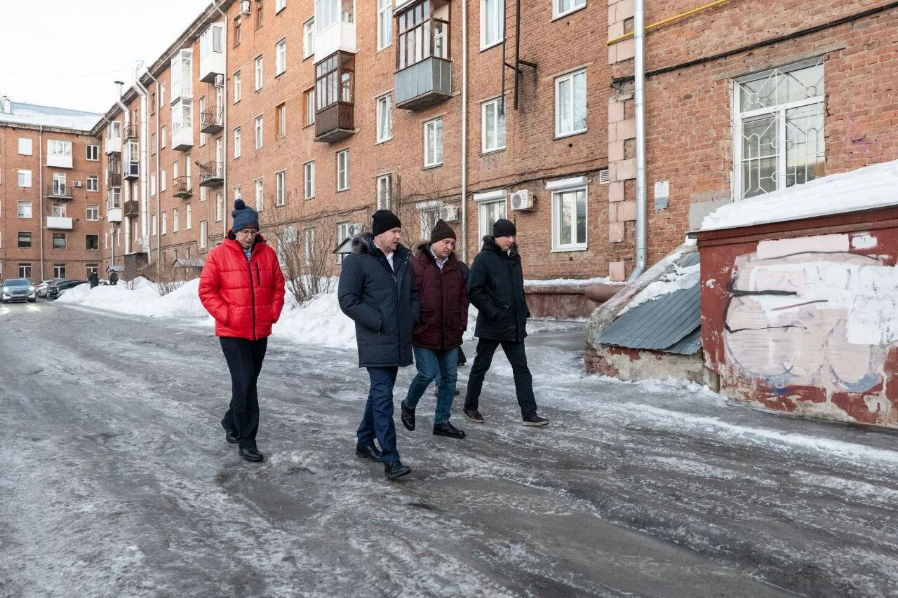 Глава Кемерова Дмитрий Анисимов вместе с замами и коммунальщиками прошёлся по скольким дорожкам, чтобы оценить ситуацию.