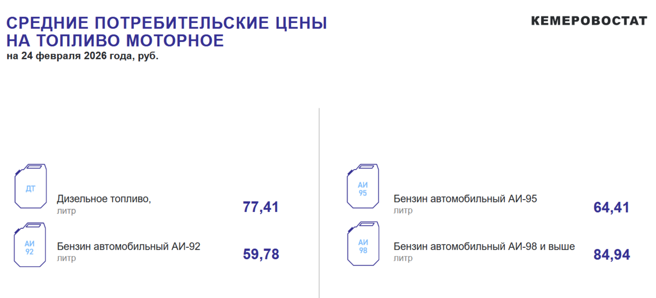 Бензин подорожал на 0,1-0,2%. За литр АИ-92 в среднем просят 59,78 рубля, АИ-95 – 64,41 рубля, АИ-98 – 84,94 рубля.