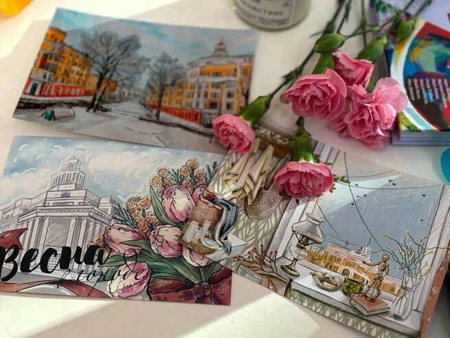 В нашей весенней коллекции – открытки, созданные кемеровскими художниками. В каждой открытке прослеживается маленькая история любви к нашему суровому, но невероятно красивому городу, искренность и тепло.