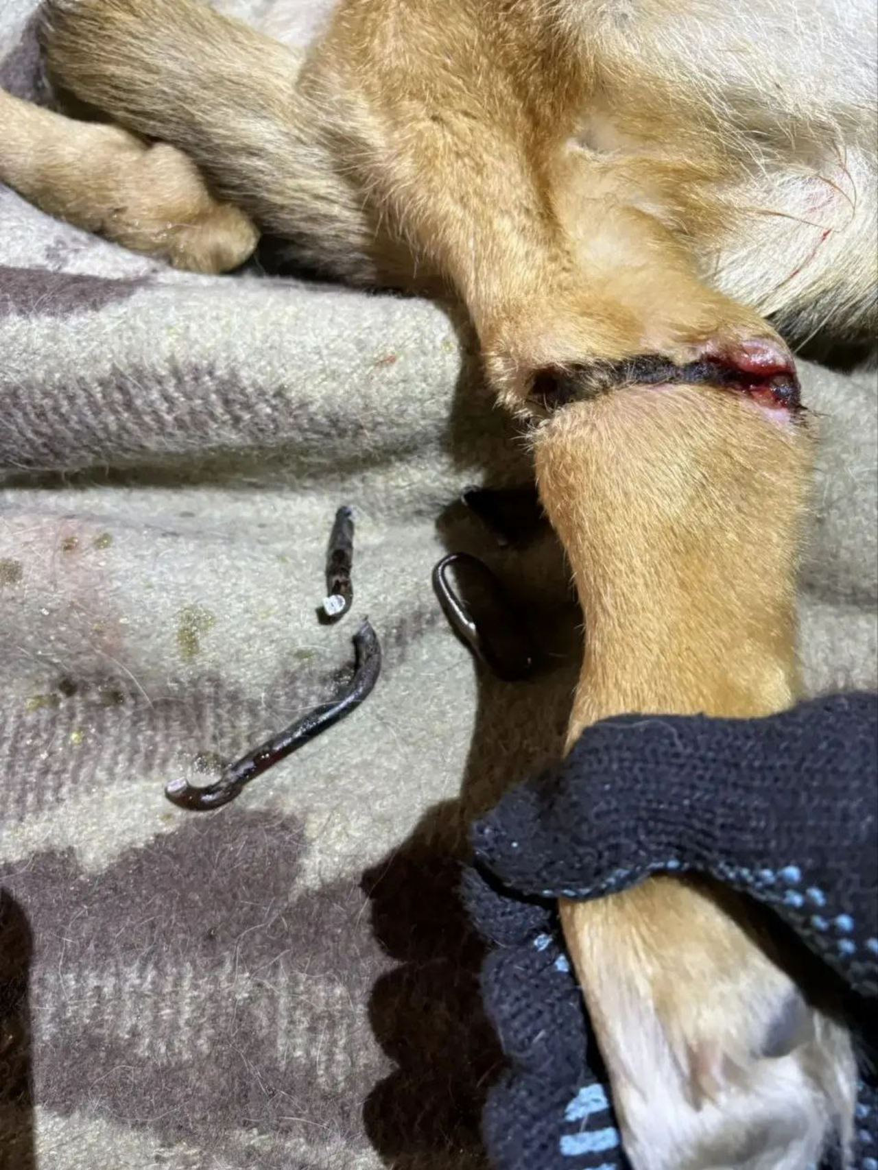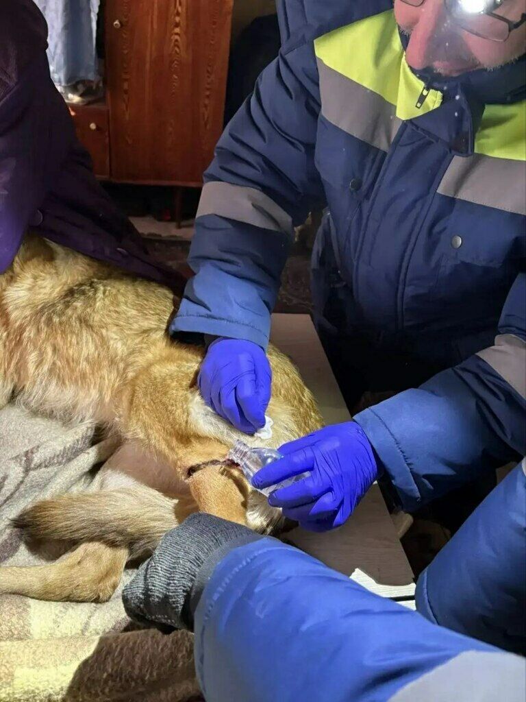 Лапа животного застряла в карабине, и самостоятельно выбраться оно не могло.