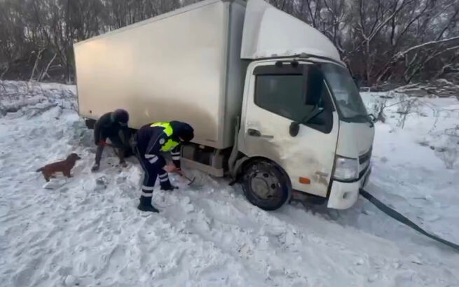 В Новокузнецком муниципальном округе сотрудники Госавтоинспекции пришли на помощь водителю грузового автомобиля, который угодил в снежную ловушку, пытаясь сократить путь – сообщает телеграм-канал "ДТП Новокузнецка".