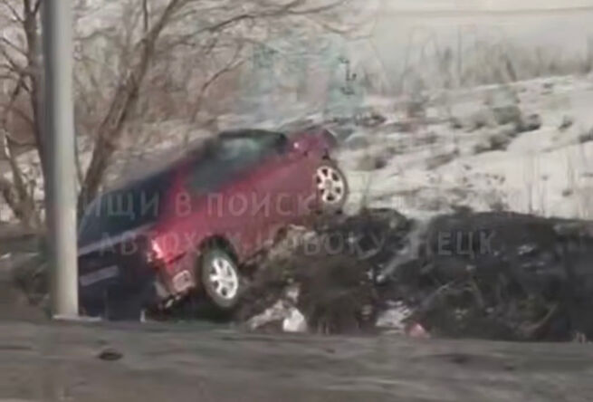 В Новокузнецке на кольце вблизи въезда в Ильинку водитель автомобиля не справился с управлением. По ходу движения машина слетела с дороги в снег. Проезжавшие мимо очевидцы сняли видео, где она заброшена на затвердевший сугроб.
