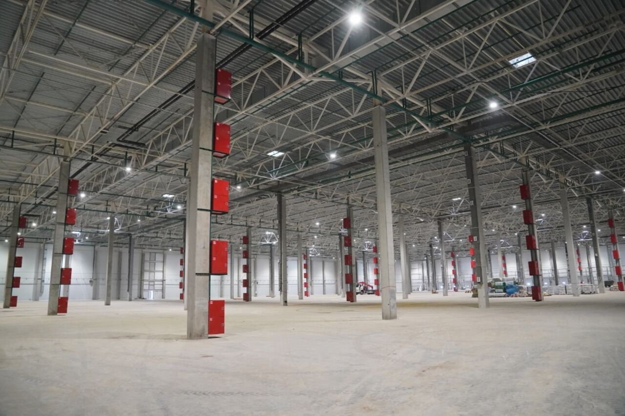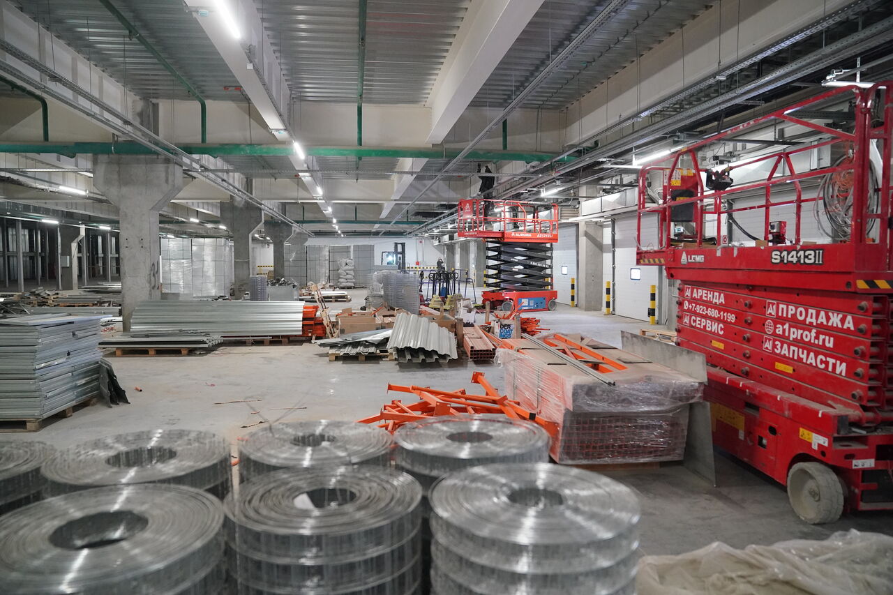 Возводили хаб в два этапа. Сначала были построены здания контрольно-пропускных пунктов, котельной, блоки №1 и №2 общей площадью 55,3 тысячи кв. метров. Они уже введены в эксплуатацию. Второй этап предполагает строительство блоков №3, №4 и №5 общей площадью 49 тысяч кв. метров.