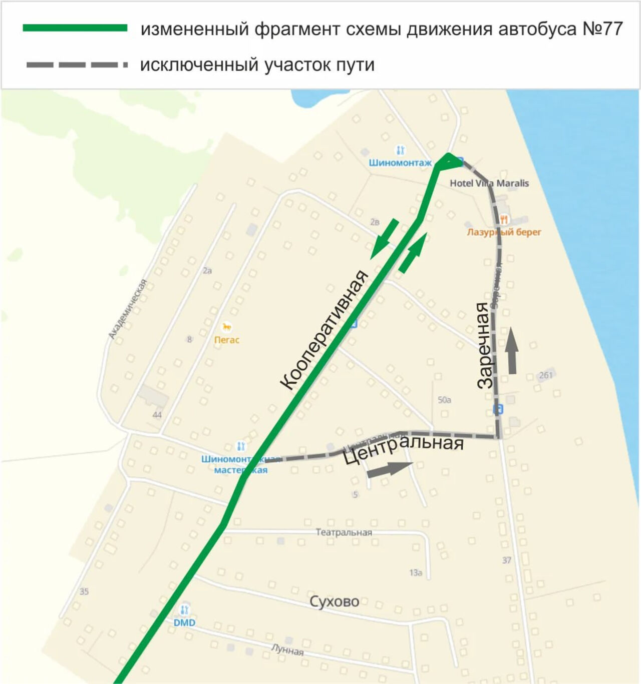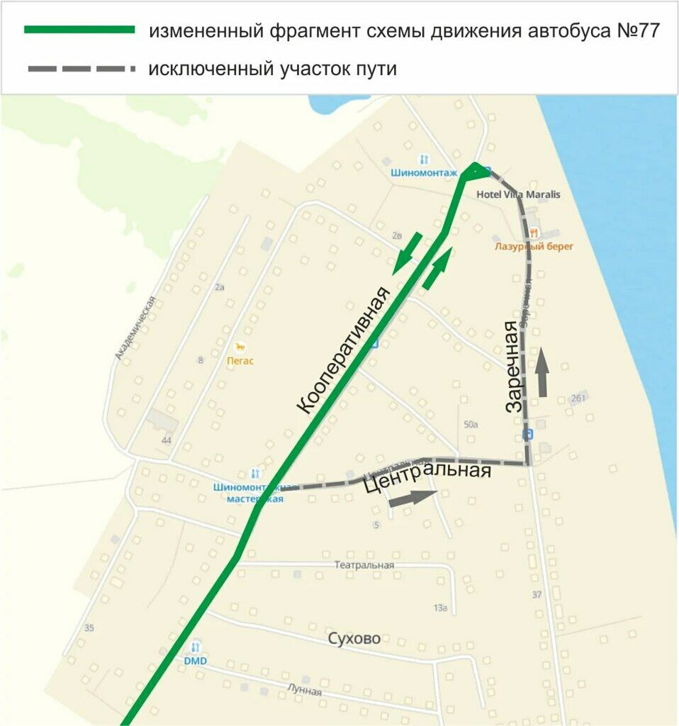 – Временно изменилась схема движения автобусного маршрута № 77 в связи с проведением аварийных ремонтных работ на водопроводе по ул. Заречная, 1 д. Сухово, – сказали в мэрии.