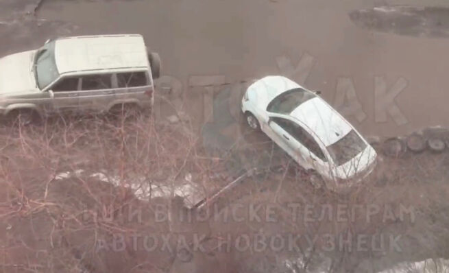 Кузбассовцы уже третий год разбивают машины в огромной и глубокой луже