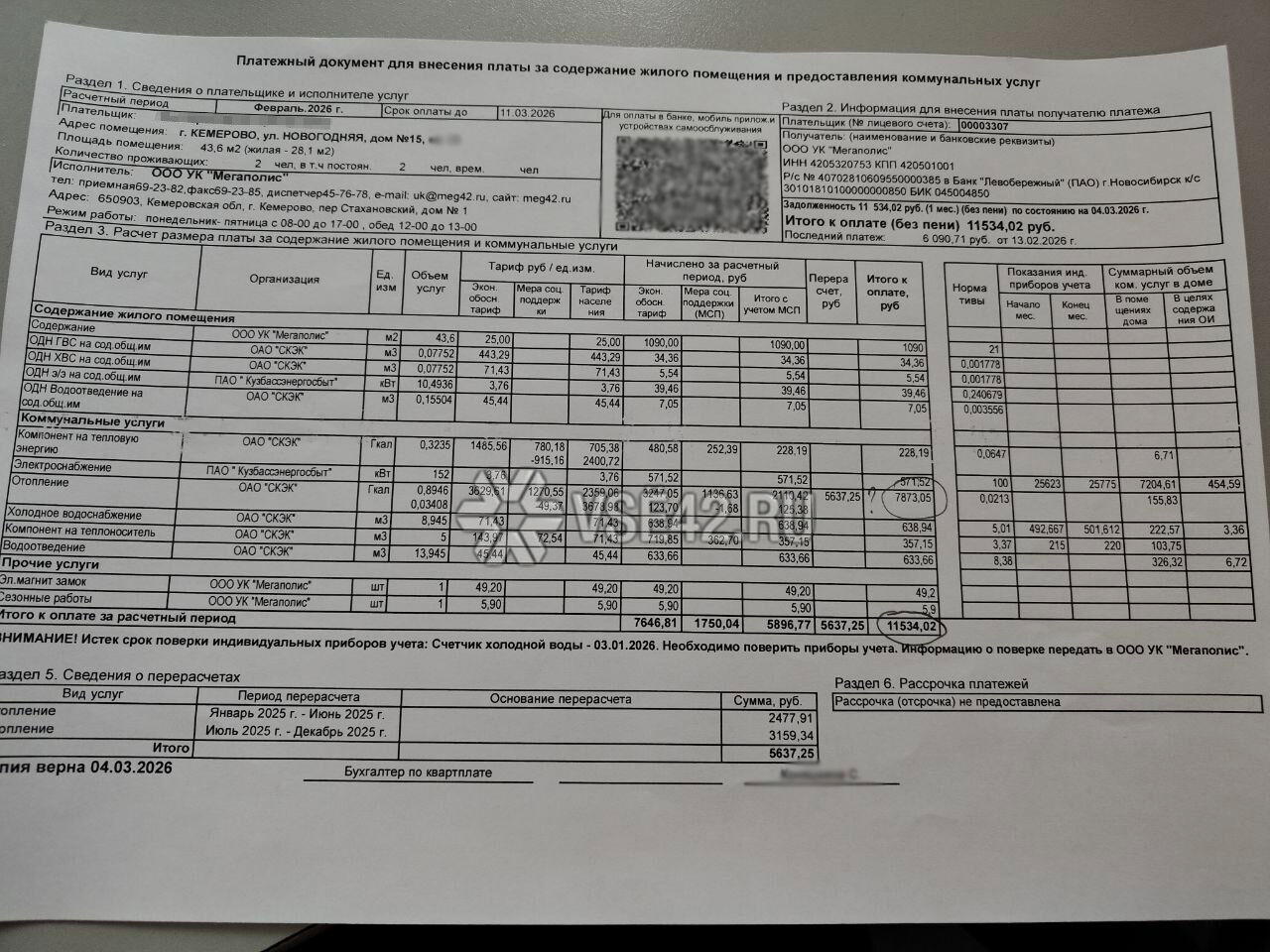 Кемеровчанка обратилась в управляющую компанию с требованием разъяснений. Там в письменном ответе (есть в распоряжении редакции) заявили, что в 2025 году вышел из строя прибор учёта тепловой энергии по причине срока эксплуатации. В связи с этим УК сделала перерасчёт в сторону увеличения: если в прошлом году сумму рассчитывали на основе потребления тепловой энергии 0,0162 Гкал/м2, то затем плату определяли по нормативу. А он для указанного дома установлен департаментом ЖКХ на уровне 0,0213 Гкал/м2, что вдвое выше.