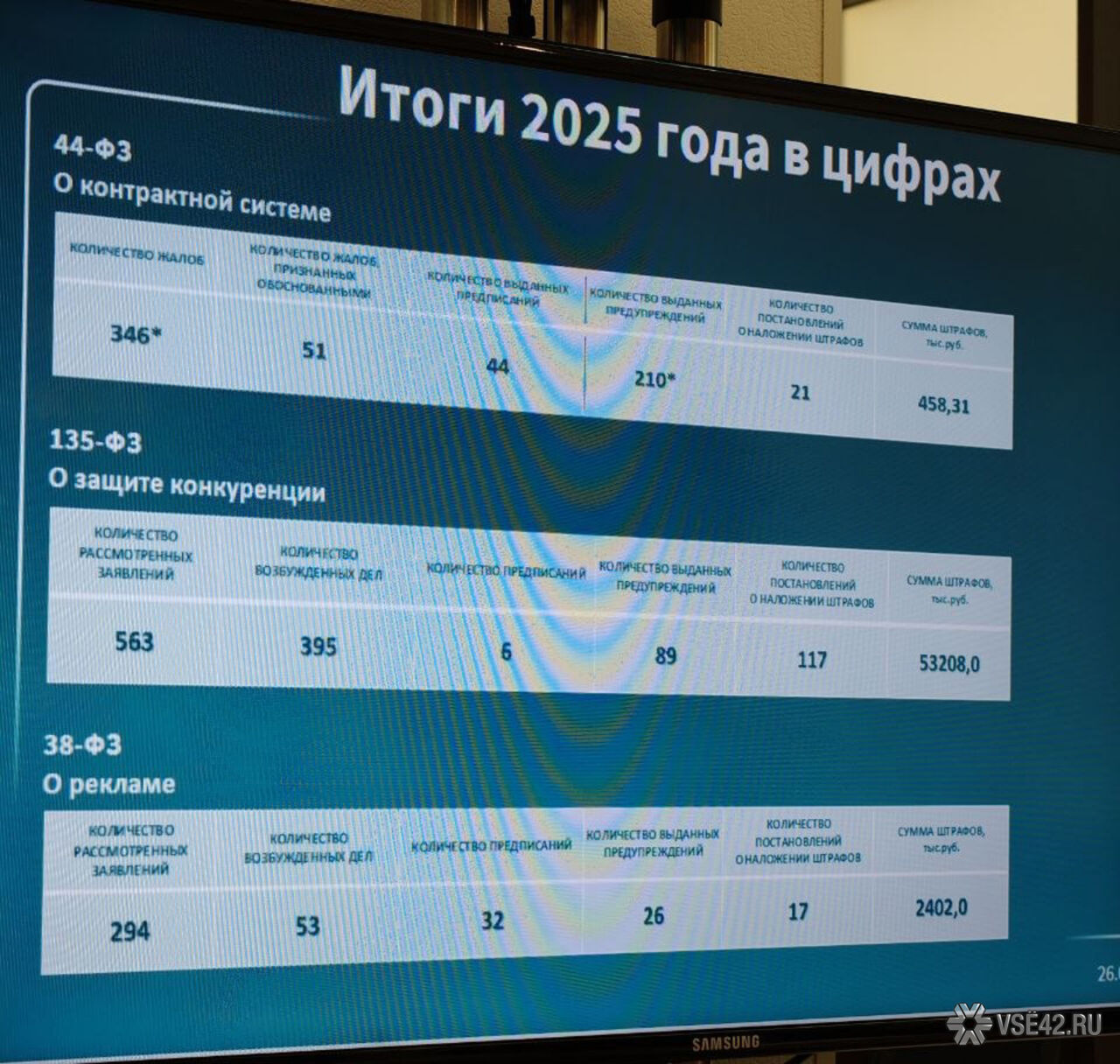 Так, общее количество жалоб на нарушения в контрактной системе составило 346, по ним выдано 210 предупреждений и выписан 21 штраф, общая сумма – 458 тысяч рублей.