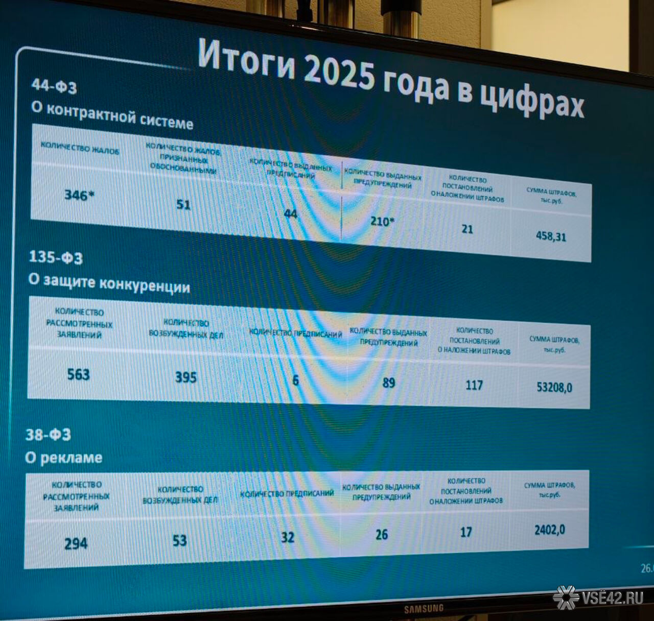 Жалоб на нарушения в сфере конкуренции поступило 563, по ним сделано 89 предупреждений и выписано 117 штрафов на 53,2 млн рублей.
