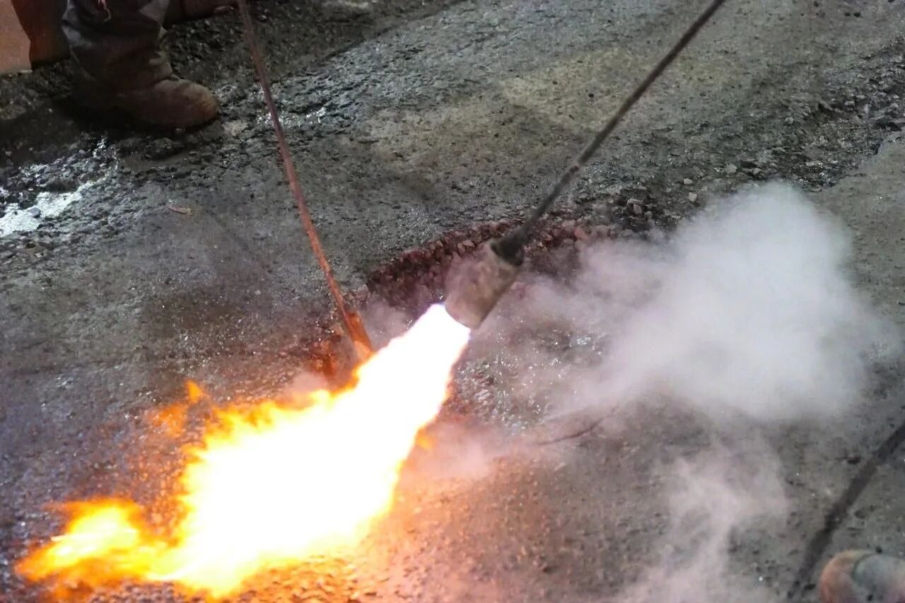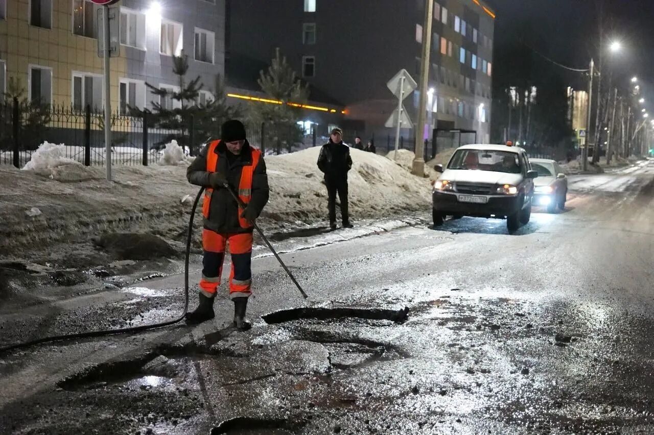 Дмитрий Анисимов отметил, что ремонт литым асфальтом продолжат. А вот после начала строительного сезона дорожные службы перейдут к классическому ямочному ремонту.