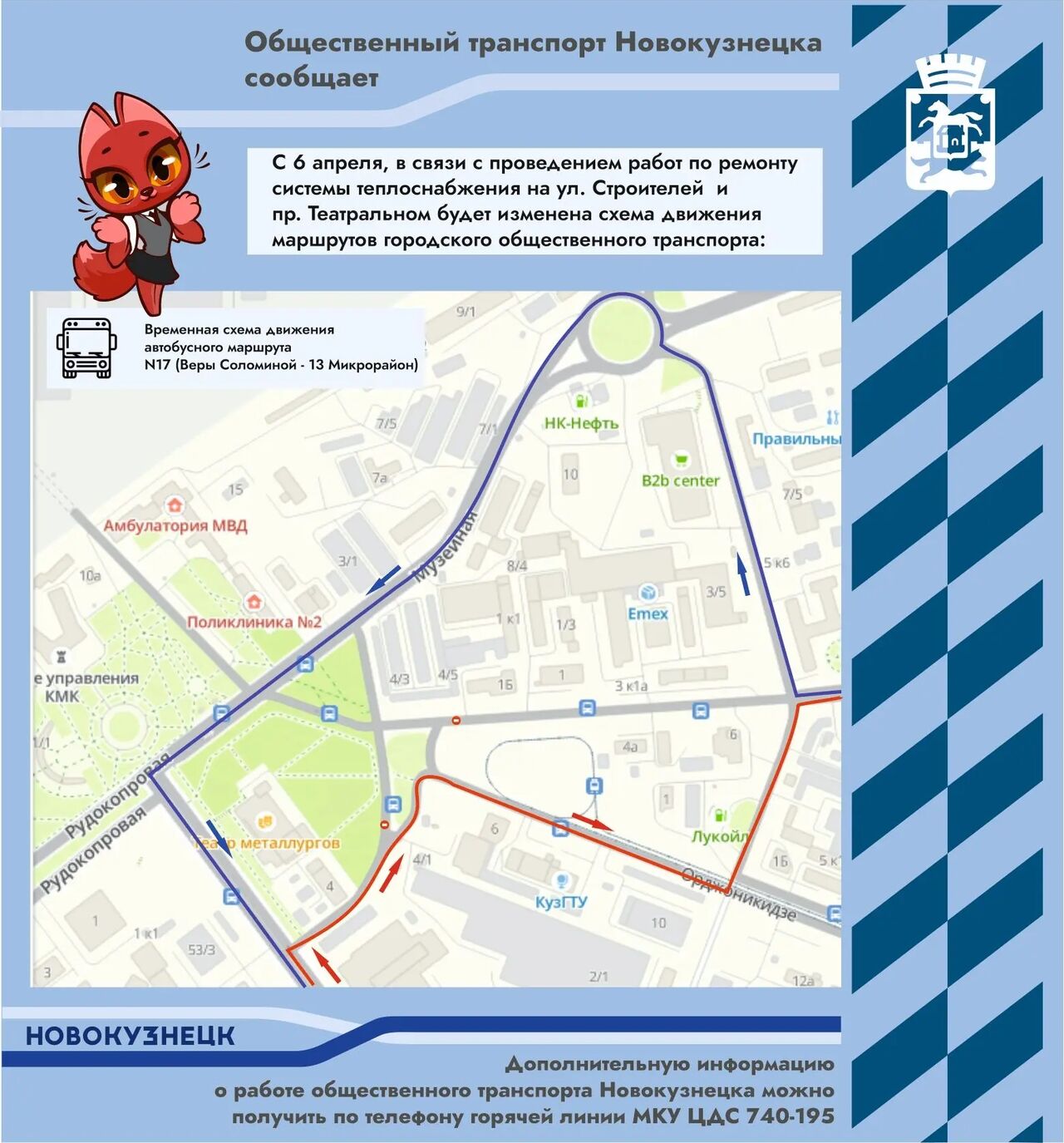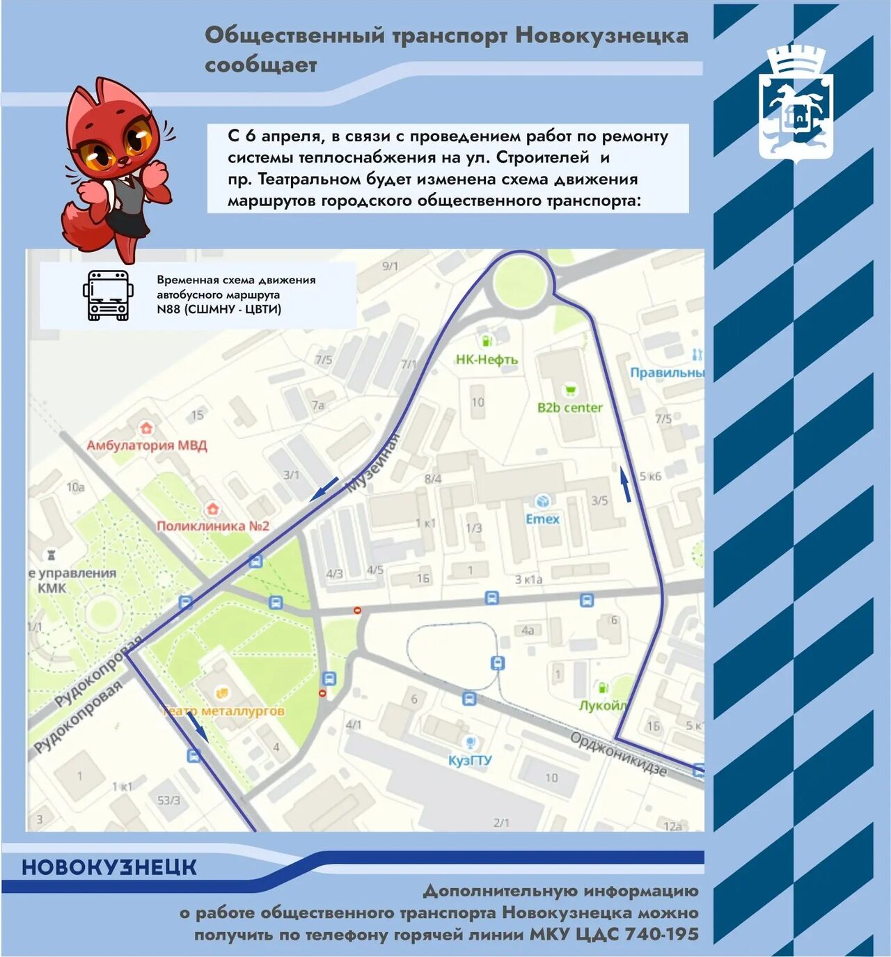 Глава Новокузнецка Денис Ильин сообщил, что с 6 апреля движение по части проспекта Строителей и проезду Театральный будет закрыто из-за капитального ремонта системы теплоснабжения.