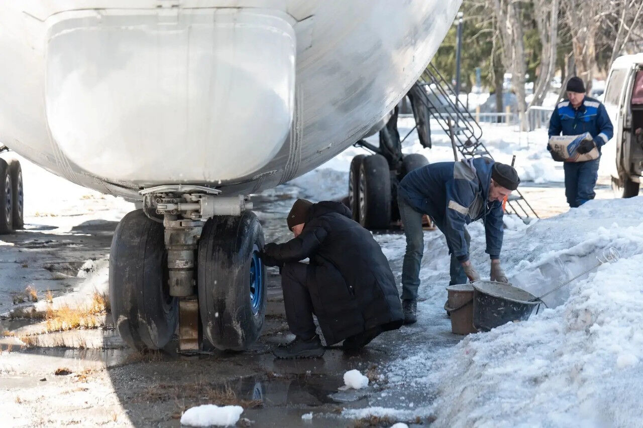 По данным пресс-службы главы г. Кемерова Дмитрия Анисимова, сейчас самолёт выравнивают и стабилизируют. Переднюю ось уже зафиксировали. Внутри демонтировали обшивку – остался голый каркас, готовый к перерождению.