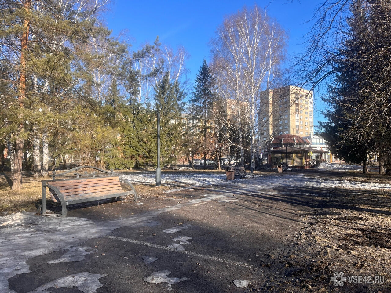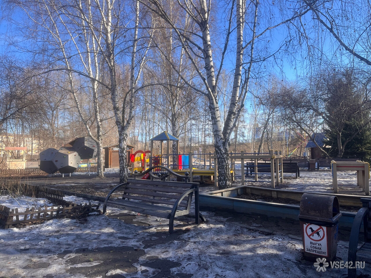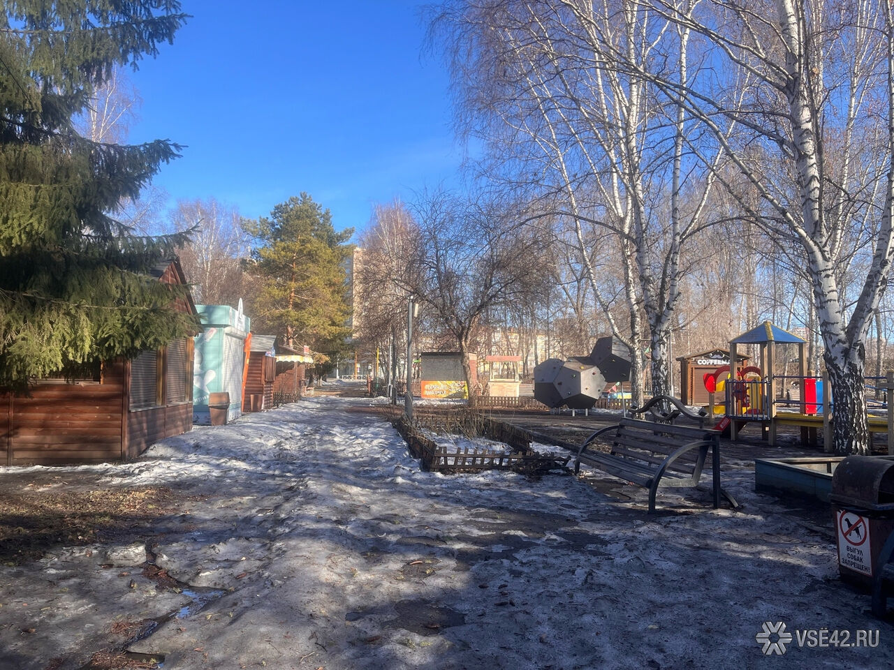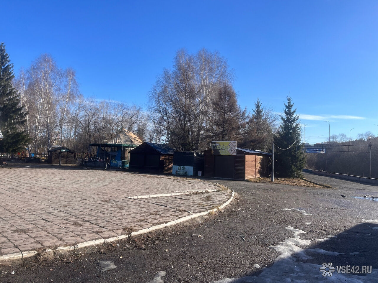 Журналист VSE42.Ru сегодня, 7 апреля, прогулялся по парку и запечатлел, как пространство выглядит перед началом активных работ.