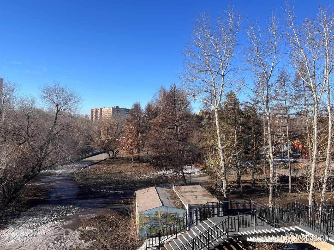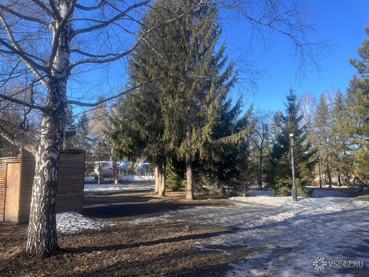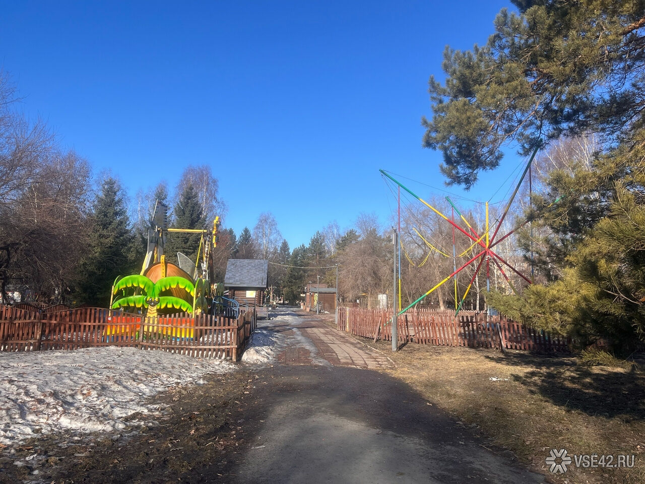 Журналист VSE42.Ru сегодня, 7 апреля, прогулялся по парку и запечатлел, как пространство выглядит перед началом активных работ.