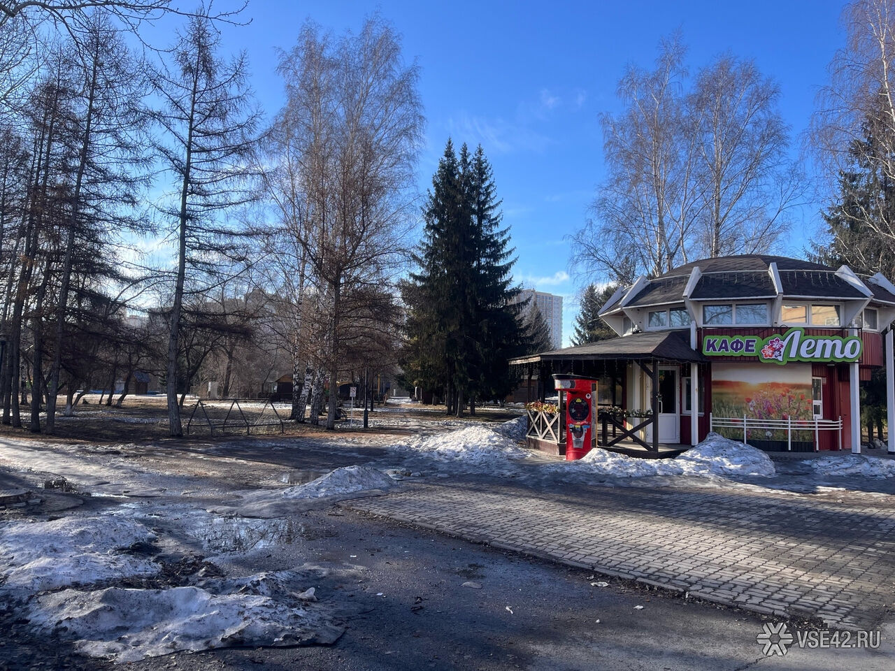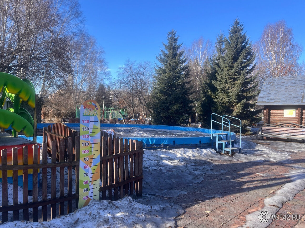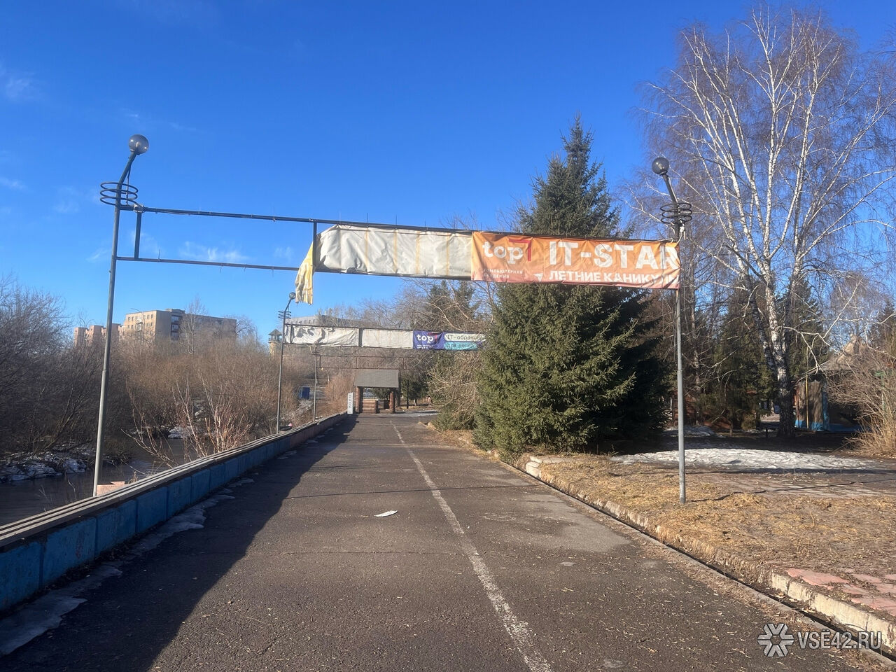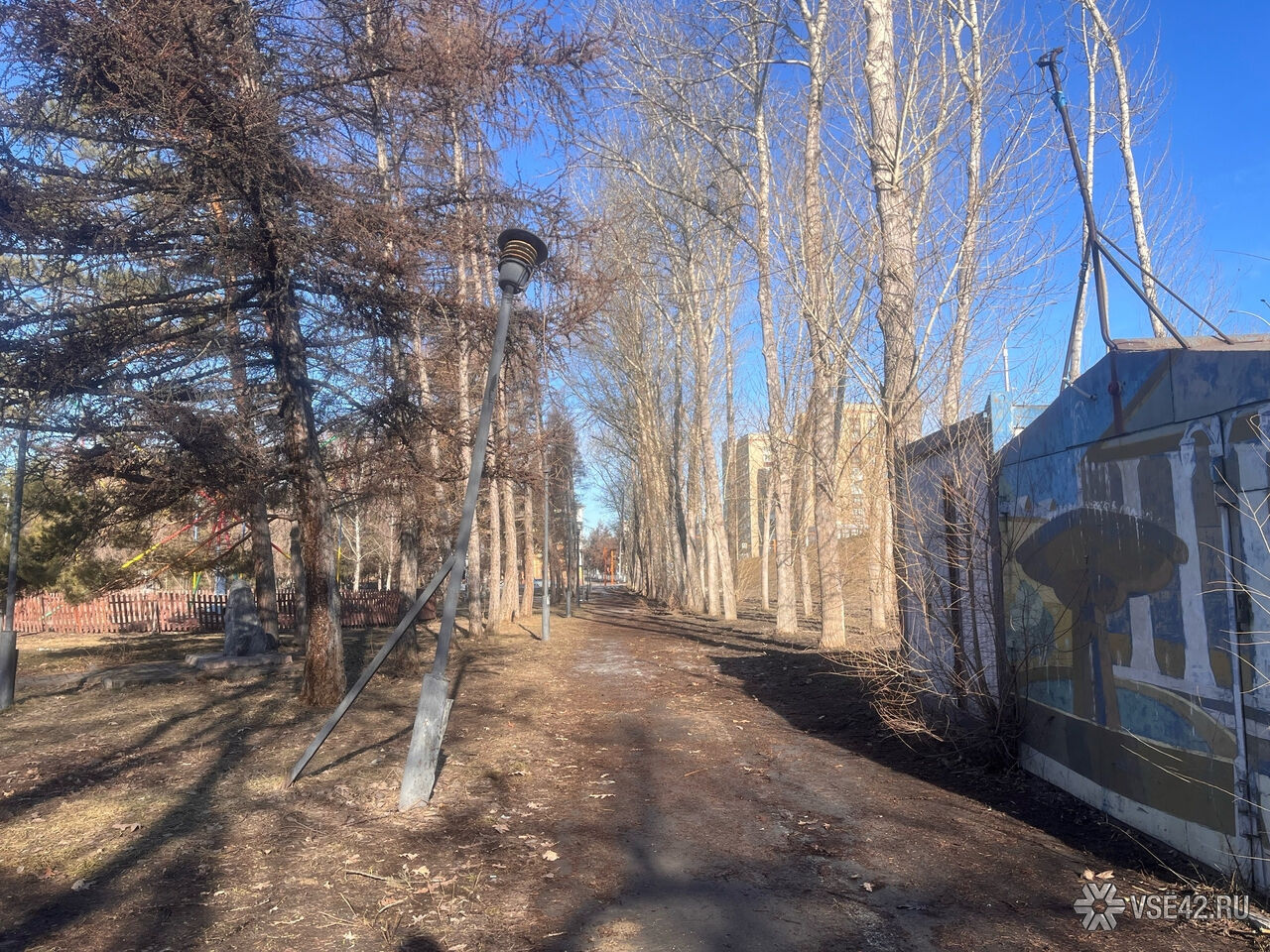 Журналист VSE42.Ru сегодня, 7 апреля, прогулялся по парку и запечатлел, как пространство выглядит перед началом активных работ.