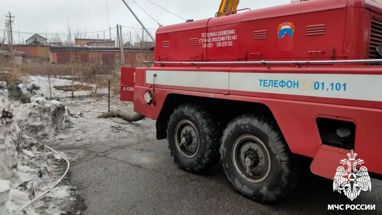Ведётся откачка пожарной насосной станции-110 на улице Желябова, также пришёл на помощь аварийно-восстановительный отряд ЖКХ Кузбасса с мотопомпой.