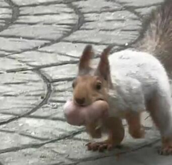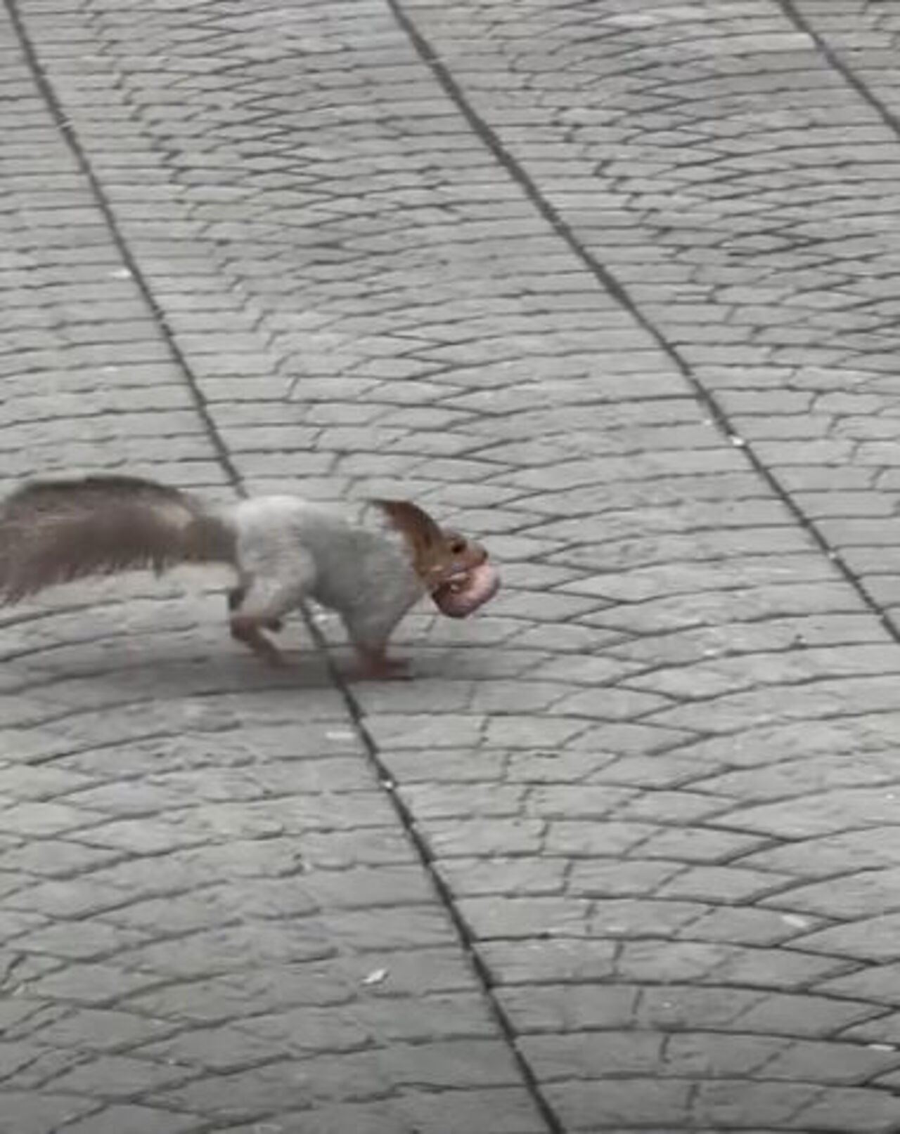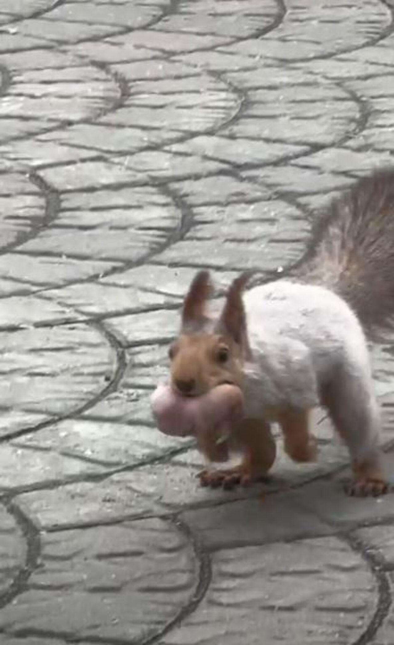 Очевидцы наблюдали, как самка по очереди переносила шестерых крошечных бельчат. Такие сцены удаётся увидеть нечасто: в период выкармливания потомства белки обычно ведут себя очень скрытно, поэтому подобные моменты редко попадают на камеру.