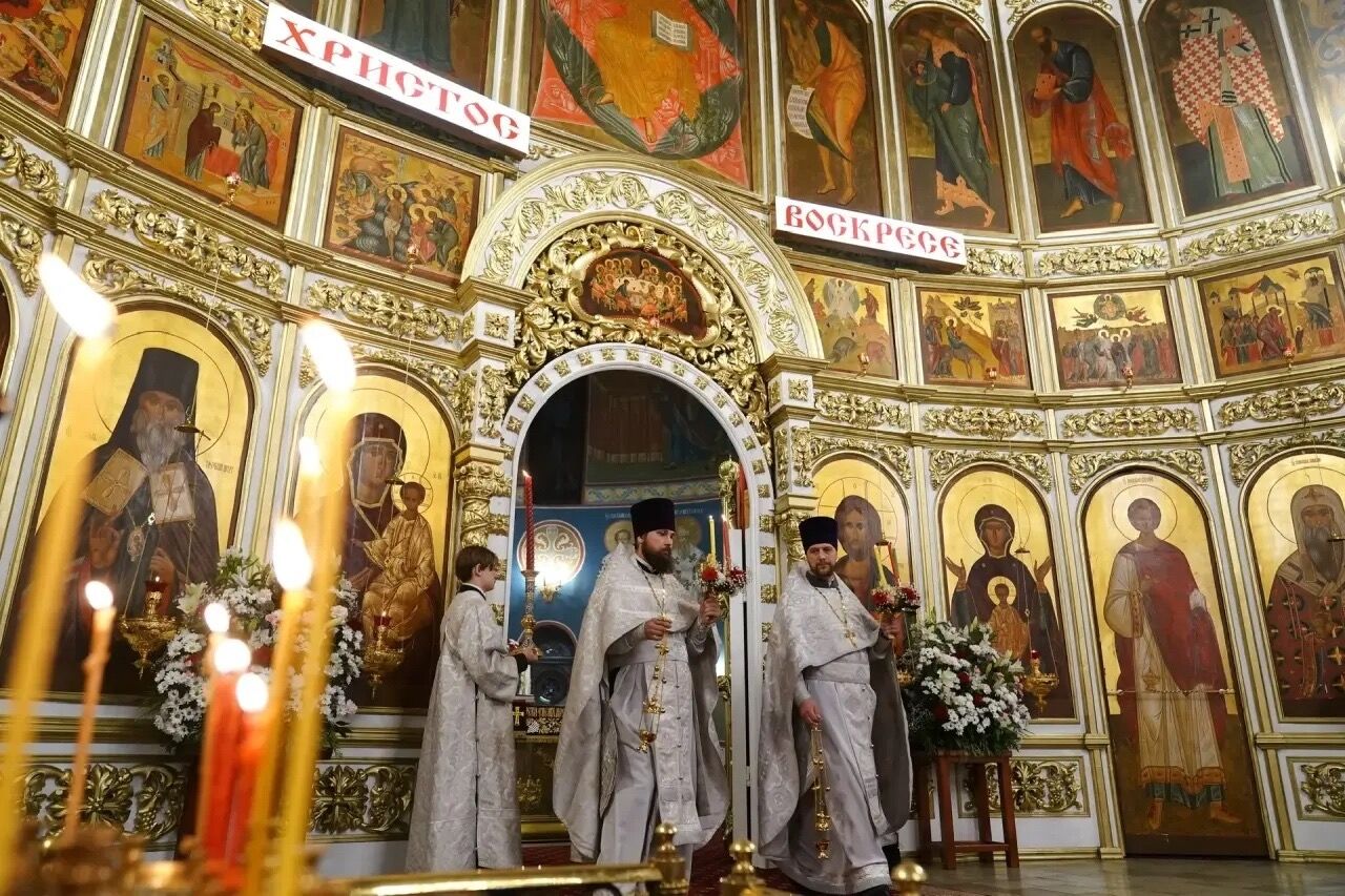 В ночь на 12 апреля в храмах Кузбасса прошли пасхальные богослужения. Губернатор региона посетил службу в Знаменском кафедральном соборе в Кемерове.