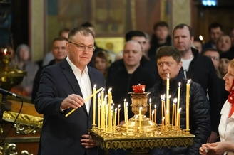 – Поздравил прихожан Знаменского кафедрального собора с Воскресением Христовым. Спасибо всем, кто сегодня разделяет эту светлую радость, кто творит добрые дела и помогает ближним. Христос Воскресе! – написал глава области в своих соцсетях.