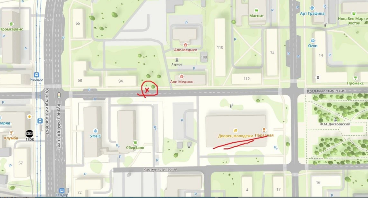 В Кемерове на улице Коммунистической около дома №94 зияет жуткая дыра в асфальте, рассказала постоянная читательница VSE42.Ru. Она опасается, что могут пострадать дети, ведь рядом находится Дворец молодёжи.