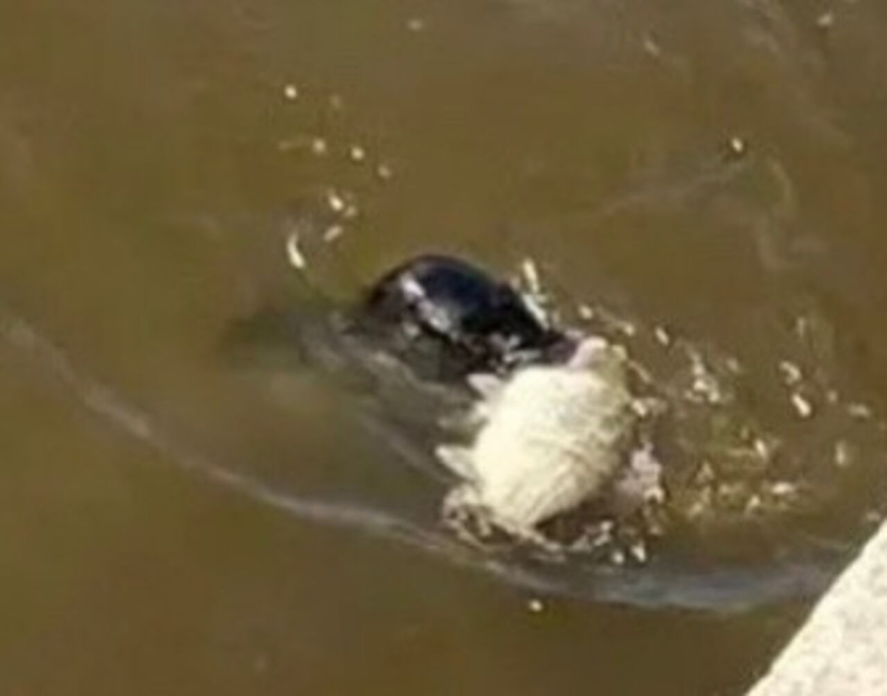 На кадрах видно, как детеныш удерживает крупную рыбу – такой пищи ему может хватить на несколько дней. При этом специалисты отмечают, что тюлененок выглядит ослабленным и продолжает искать еду в городских условиях.