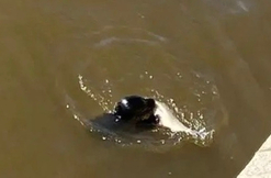 Зоозащитники сняли кадры, как тюлененок, случайно заплывший в Обводный канал, охотится за рыбой в центре Петербурга.