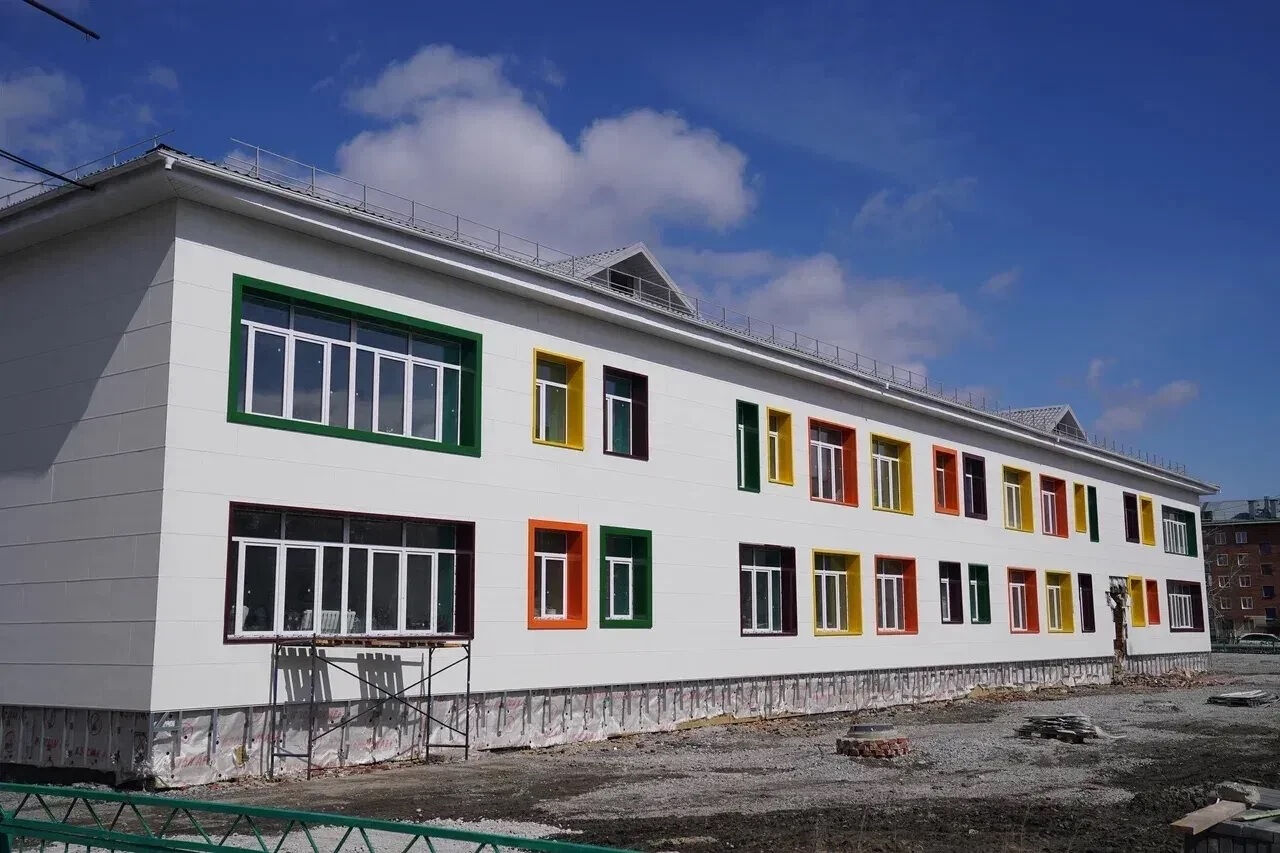 Сейчас на здании уже сделали кровлю, фасад готов на 97%, заменили окна и инженерные сети. Идёт чистовая отделка. Летом подрядчик благоустроит территорию и поставит новые игровые площадки. Губернатор Илья Середюк пообещал: если успеют раньше 1 сентября – откроют сразу, не дожидаясь срока.