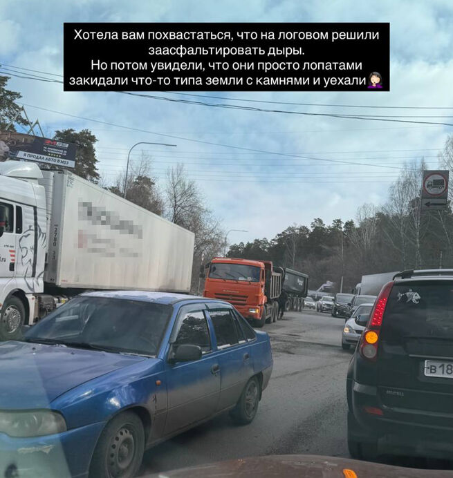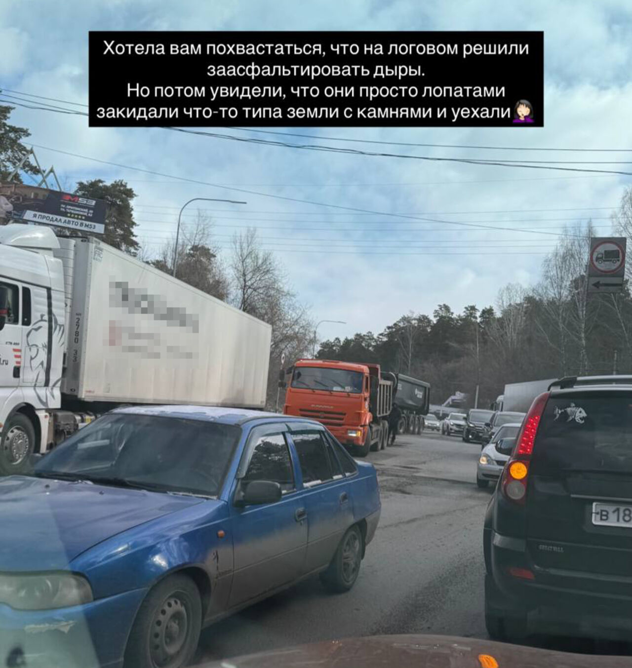 – Хотела похвастаться, что на Логовом шоссе решили заасфальтировать дыры. Но потом увидели, что они просто лопатами закидали что-то типа земли с камнями и уехали, – сказала кемеровчанка.